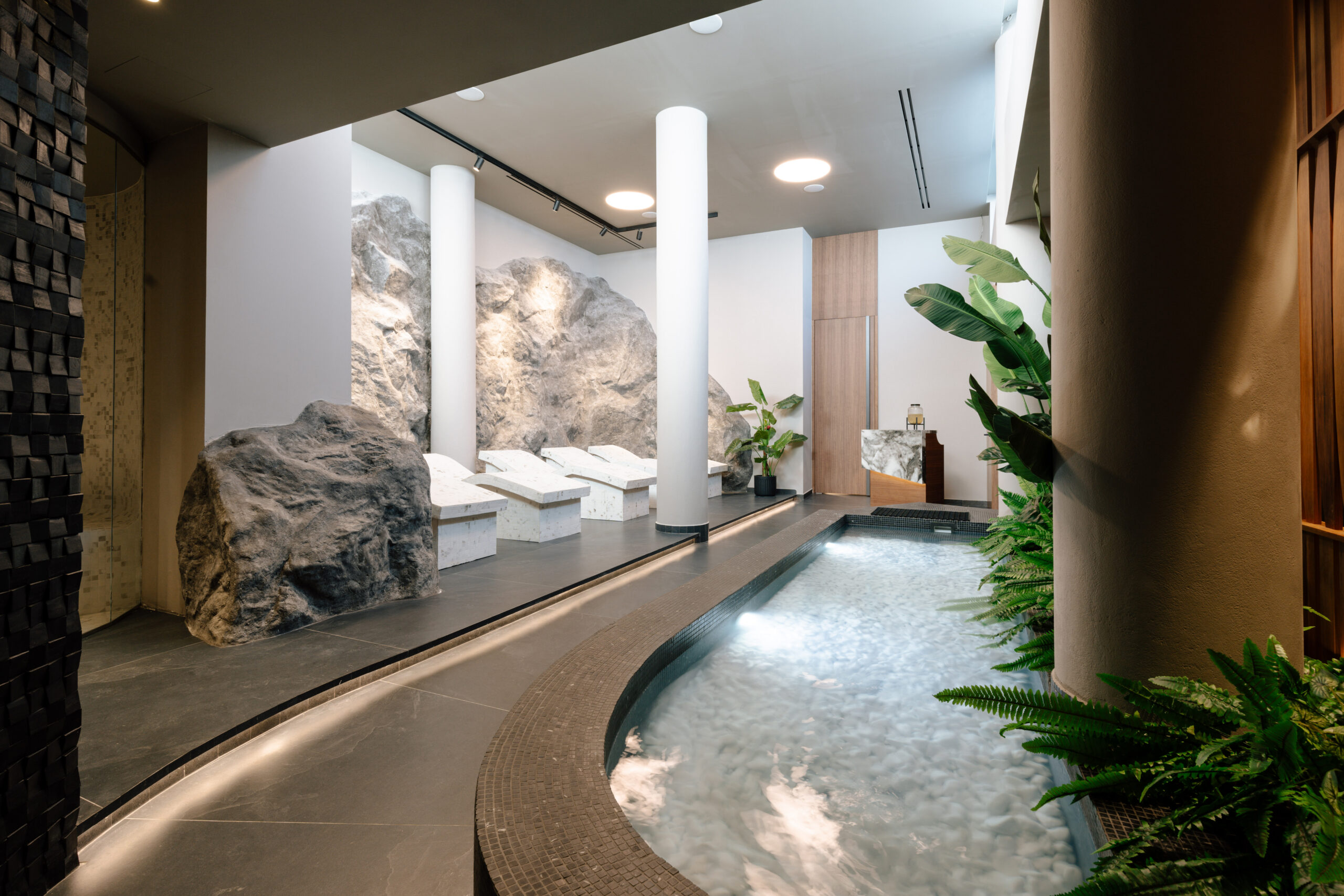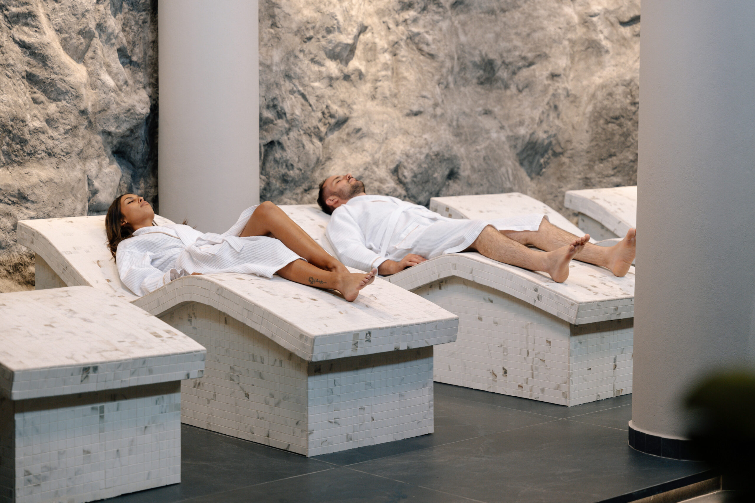 The spa’s sophisticated design, inspired by minimal Cycladic aesthetics, embraces soft hues, natural textures, and calming light. This serene environment enhances every moment, inviting guests to disconnect from the ordinary and immerse themselves in pure relaxation.