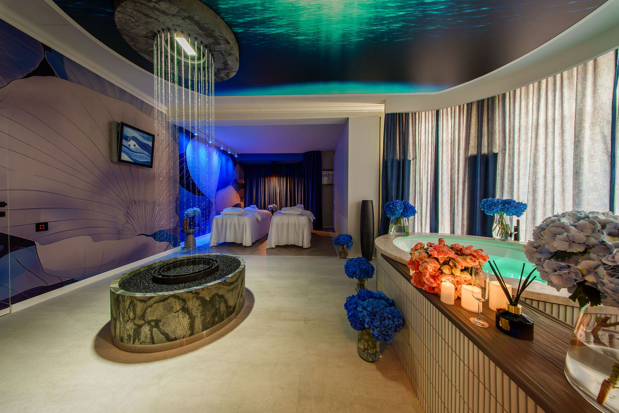 Each ritual takes place within themed rooms inspired by the elements – Earth, Water, Air, and Fire – culminating in the fifth element: inner stillness. World-renowned brands like Valmont, Subtle Energies, and Aromatherapy Associates meet cutting-edge spa technology, ensuring results and transformation.